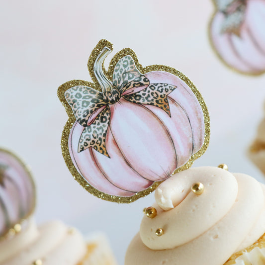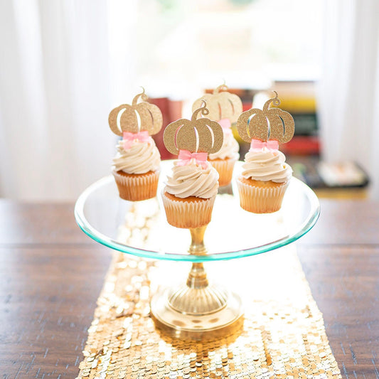 Pumpkin Cupcake Toppers Set of 12, Pink and Gold Glitter Pumpkin Picks, Fall Baby Shower Decor, Autumn Party Cupcake Toppers