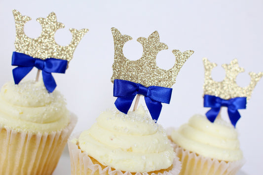 Royal Prince Crown Baby Shower Cupcake Toppers Decor
