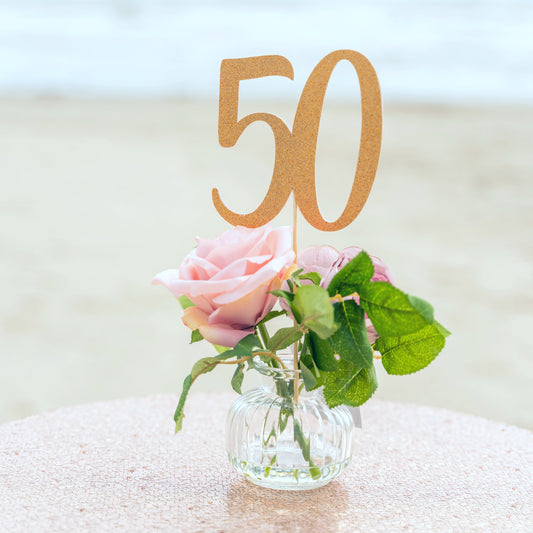 50th Birthday Centerpiece Stick, 50th Birthday Decorations, 50th Birthday gift for Women, Copper and Rose Gold 50th Birthday Decor