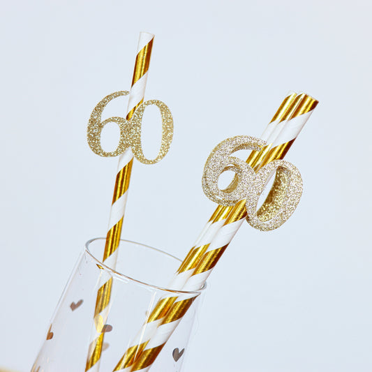 60th Birthday Party Straws Set of 10 - Metallic Gold with 60 Cutout, Gift for Turning 60, Gold Birthday Gift for Her, Golden Year Gift