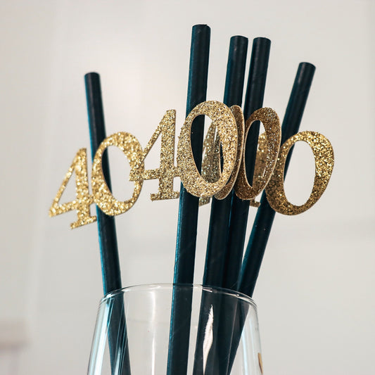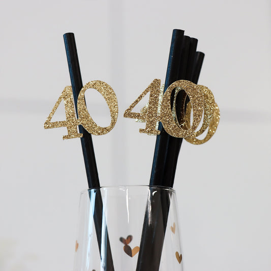 40th Birthday Party Straws, Gold Glitter Decor, Women's Birthday Celebration, Beverage Tableware