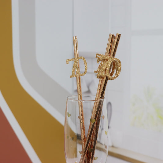 70th Birthday Rose Gold Straws, Milestone Party Tableware, Adult Birthday Decor, Gift for Grandparent