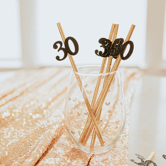 30th Birthday Party Straws, Metallic Gold for Dirty Thirty Decor, Elegant 30th Decorations Gift for Her