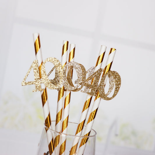 40th Birthday Party Decorations - Gold Party Straws, 40th Birthday Favors - Elegant & Stylish 40th Birthday Celebration Accessories
