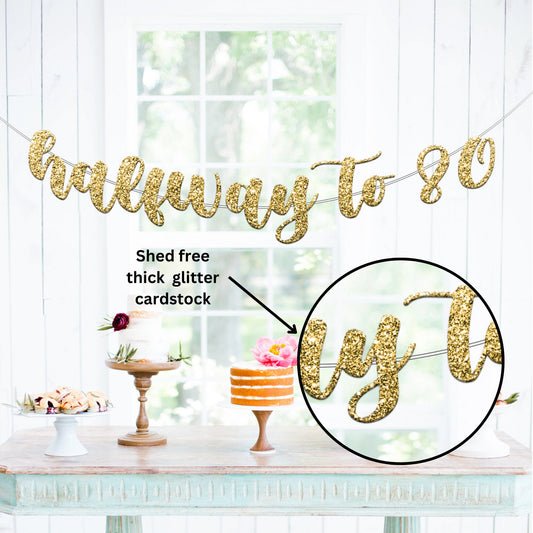 40th Birthday Decoration, Forty and Flawless Gold Glitter Banner, Party Decor for Adult, Ideal Gift from Friends