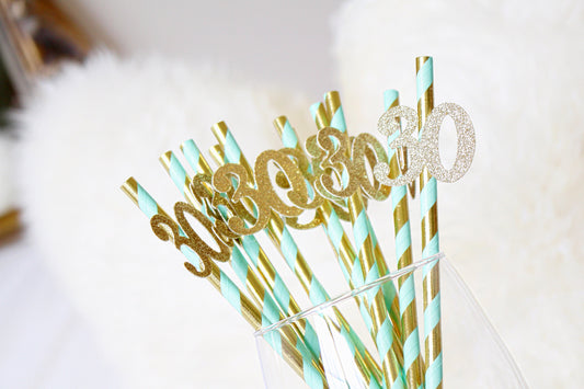 30th Birthday Party Straws - 30th Birthday Party Decorations - Dirty thirty party -30th Birthday for her - Mint and gold 30th Birthday Decor