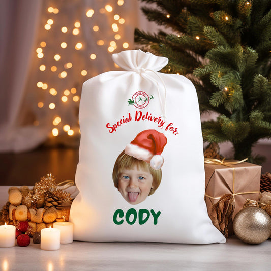Personalized Christmas Santa Sack Gift Bag with Custom Photo, Christmas gift bag, Holiday Gift for Kids, Reusable Gift Bag