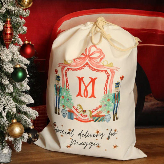 Personalized Nutcracker Monogram Santa Sack, Christmas Eve Box, Christmas Sack, First Christmas Gift, Nutcracker Gift Bag